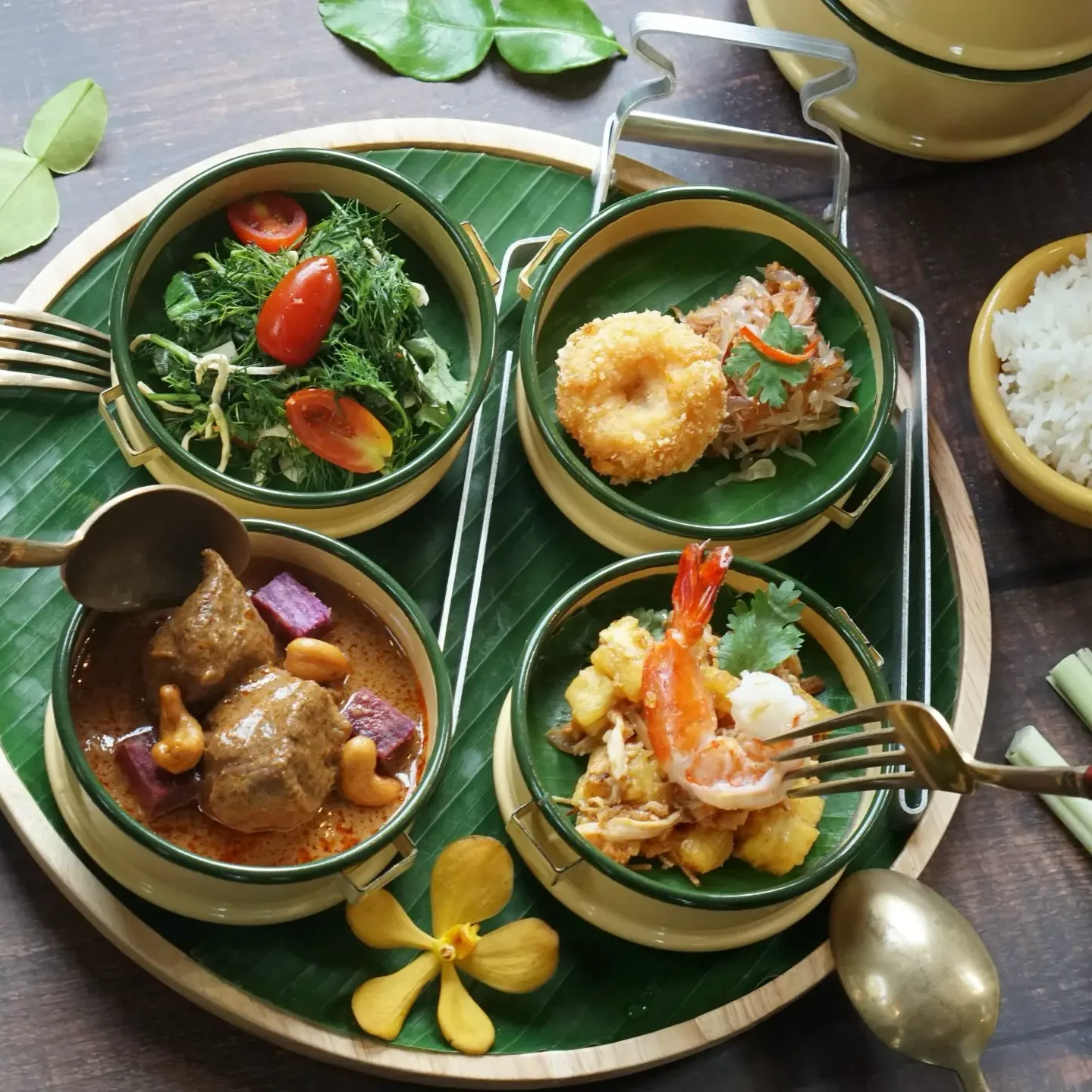 Hier proef je de ziel van de Thaise keuken: gerechten die in balans zijn: een samenspel van zoet, zuur, zout, bitter en pittig. Bestel bijvoorbeeld een green curry met verse basilicum, of een pla rad prik – krokant gebakken vis overgoten met een zoet-pittige chilisaus. De smaken zijn intens, maar harmonieus.