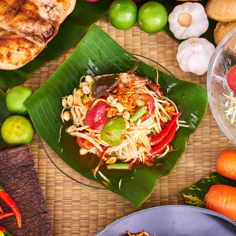 - Of laat je verleiden door som tam, een pittige papajasalade die tegelijkertijd fris, zuur, zout en scherp is.