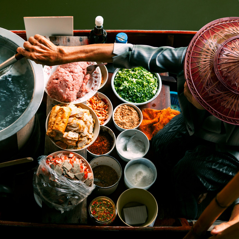 Of je nu kiest voor een avondje streetfood in Bangkok, een luxe diner bij Sorn of R-HAAN of een kookles op het platteland, eten brengt je dichter bij de ziel van Thailand.