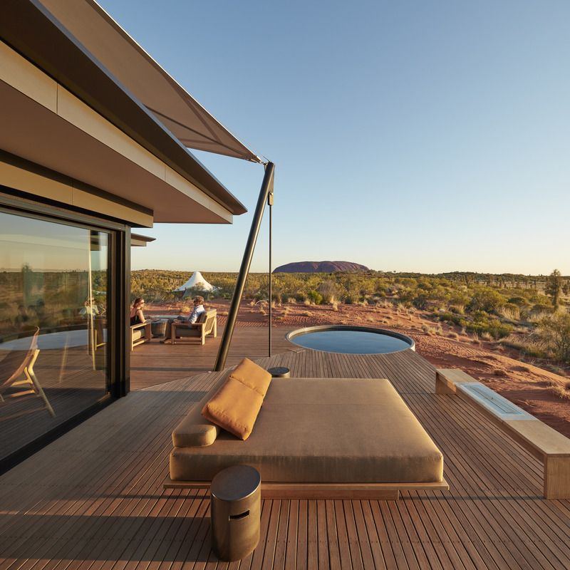 ’s Avonds zak je heerlijk weg in je ligstoel, met een glaasje in de hand, terwijl zich boven jou langzaam een betoverende sterrenhemel ontvouwt. En wil je helemaal opgaan in het moment, dan is er nog het Dune Pavilion, een exclusiever verblijf met je eigen plungepool en met een fantastisch uitzicht op Uluru én Kata Tjuta. Beter dan dit wordt het niet.