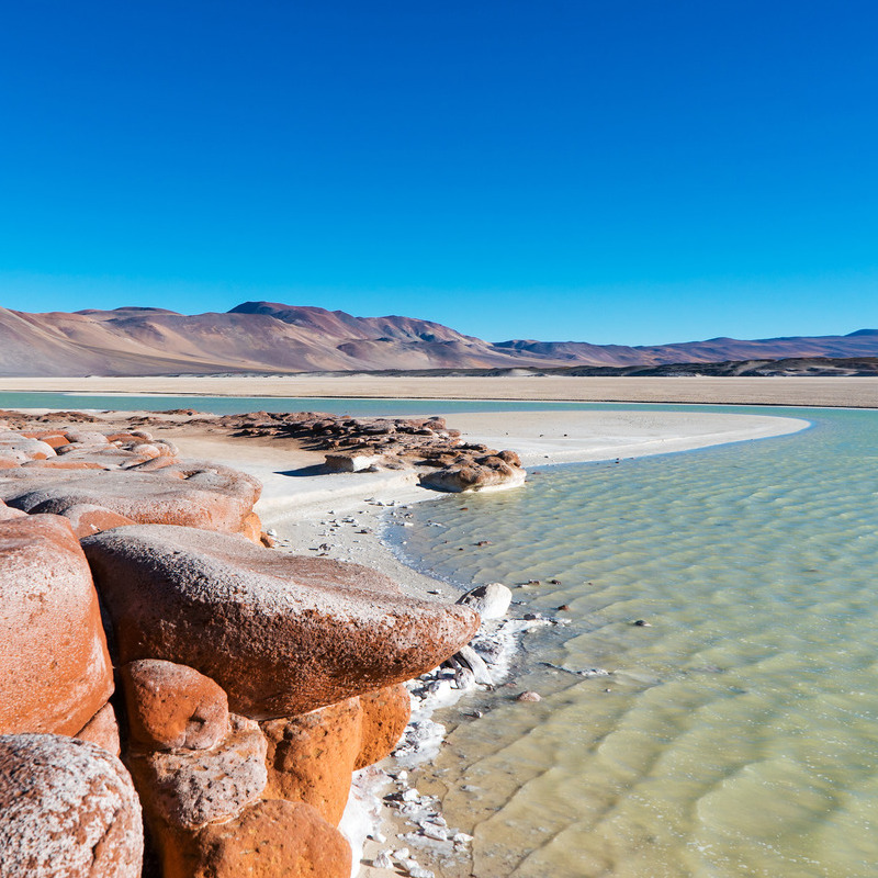 Aan het einde van het pad wacht een oase van rust: de warmwaterbronnen van Puritama, acht natuurlijke poelen omgeven door hoge grassen. Het water is helder en aangenaam warm, rijk aan mineralen en bekend om zijn helende werking. Het is de ideale plek om even helemaal tot rust te komen en je spieren te ontspannen. Na een drankje en een lichte snack brengt de transfer je terug naar San Pedro de Atacama.