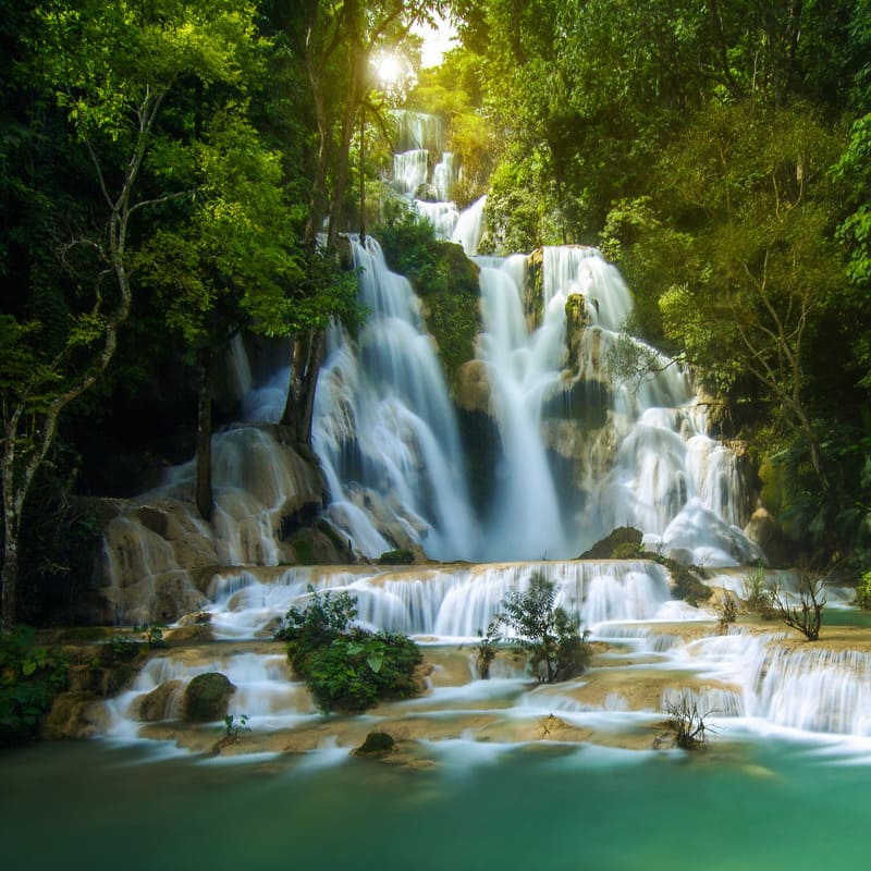 De dag begint vroeg met een ontbijtcruise over de Mekong richting de Kuang Si-watervallen. Terwijl je geniet van vers fruit, koffie en lokale lekkernijen, glijdt het landschap langzaam aan je voorbij en zie je de oevers ontwaken. Bij aankomst kun je een verfrissende duik nemen of wandelen langs de watervallen en turquoise poelen, omringd door tropisch groen.