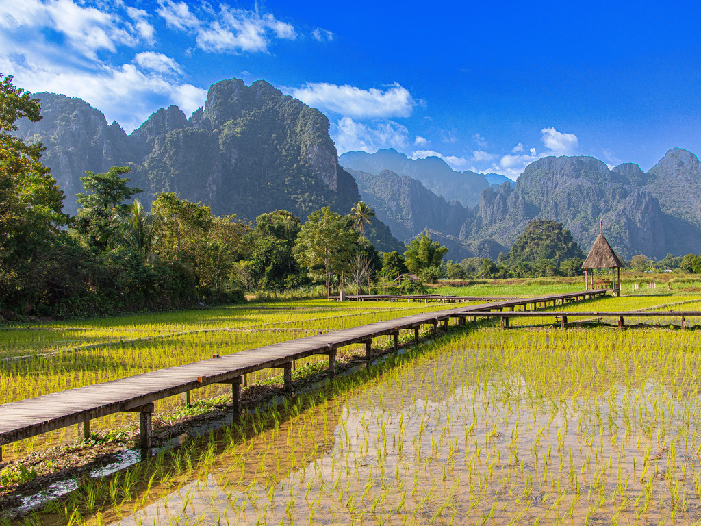 Zin in een duik? Als het weer het toelaat, is er tijd om af te koelen met een verfrissende plons in het kristalheldere water. Na deze ontspannen middag vervolgen we de rit naar het avontuurlijke Vang Vieng. Onderweg maken we nog een korte stop bij een lokaal dorp om de benen te strekken en het dagelijkse leven te observeren.