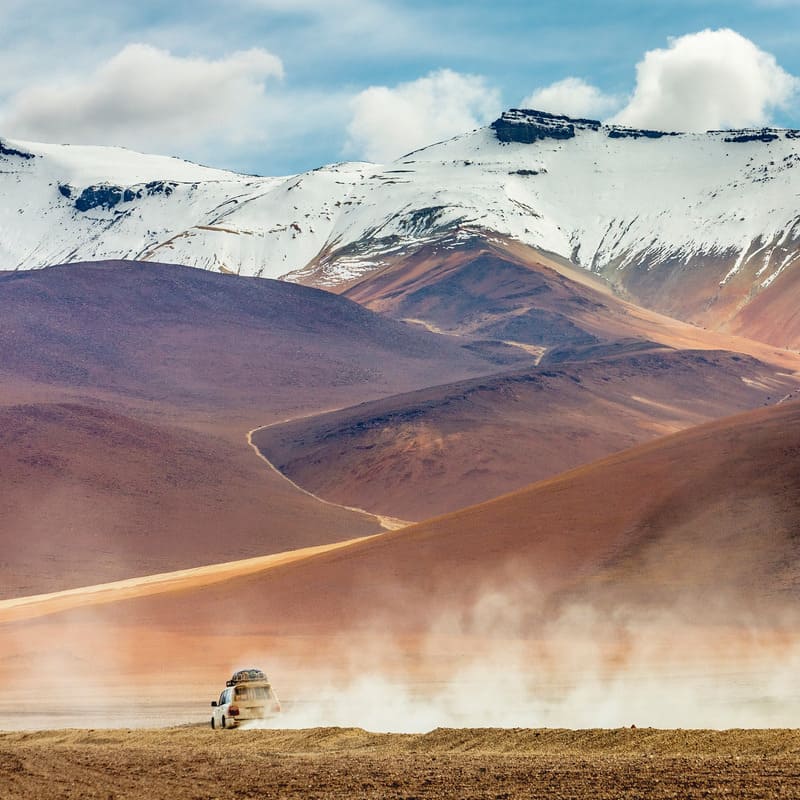 Vandaag trek je de hoogvlakte in, waar de lucht ijl wordt en de stilte bijna tastbaar is. Samen met je Engelssprekende gids reis je vanuit Socaire richting de saffierblauwe meren Miscanti en Miñiques, omringd door vulkaantoppen die vaak met sneeuw bedekt zijn. Op meer dan 4.000 meter hoogte lijkt de wereld hier stil te vallen, enkel de wind en het spel van licht over het water blijven bewegen.