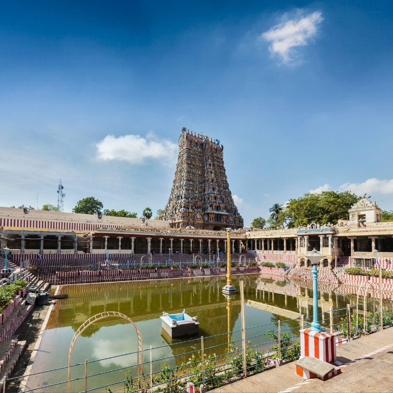 Via Chettinad, beroemd om zijn statige houten huizen, en een charmant pottenbakkersdorp reis je naar de laatste grote tempelstad van deze Zuid-Indiareis. In Madurai steken de torentempels meer dan 50 meter boven de stad uit. De bekendste, de Minakshee-tempel, is bedekt met honderden kleurrijke godenbeelden en lijkt wel een reusachtige suikertaart. ’s Avonds kan je er de indrukwekkende Aarti-ceremonie meemaken, terwijl overdag een onafgebroken stroom van pelgrims de tempel vult met kleur, wierookgeur en gezangen. In het Gandhi-museum vind je tal van persoonlijke herinneringen aan de grondlegger van de Indische natie.