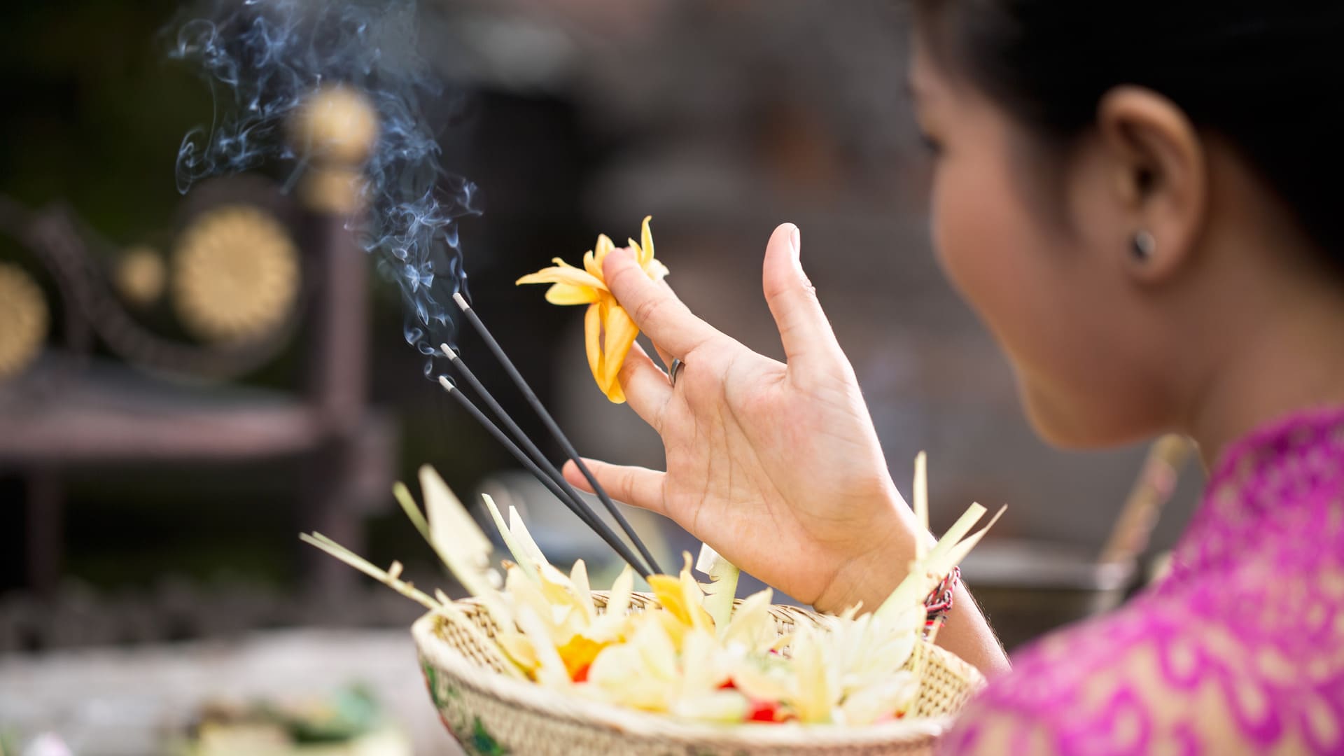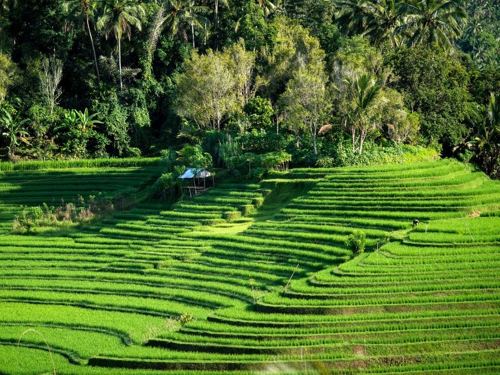 Onderweg doorkruis je glooiende rijstvelden, traditionele dorpjes en groene bossen. Het dagelijkse leven van de boeren vormt het decor, terwijl vrouwen kleurrijke offers naar de tempel dragen. Een bijzonder intermezzo volgt bij een lokale familie, waar je gastvrij wordt ontvangen en geniet van een verfrissende jonge kokosnoot. Hier ervaar je de warmte van de Balinese cultuur van dichtbij.