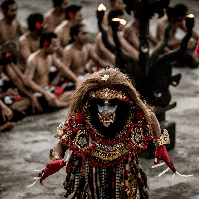 Wanneer de zon langzaam wegzakt in de oceaan, begeef je je naar de indrukwekkende Uluwatu-tempel, hoog gelegen op een klif. Hier woon je de betoverende Kecak-dans bij: een spektakel van zang, ritme en beweging, omlijst door de magische kleuren van de zonsondergang. Een iconische Balinese ervaring die je niet snel zult vergeten.