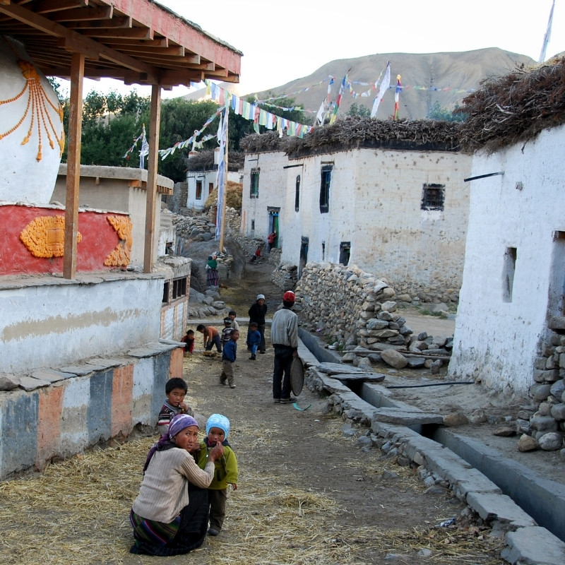Vandaag voert de route je over verschillende bergpassen van 3700 meter en hoger richting Ghilling. Onderweg stop je in kleine dorpjes voor korte wandelingen en ontmoetingen met de kleurrijke bewoners van Mustang. Je passeert talloze manimuren en chorten, die het boeddhistische karakter van de regio extra benadrukken. Vanuit Shyanboche maak je een wandeling van ongeveer twee uur naar een prachtig uitzichtpunt over de Kali Gandaki-vallei. De dag eindigt in Ghilling, waar een kleine gompa het dorpshart siert.