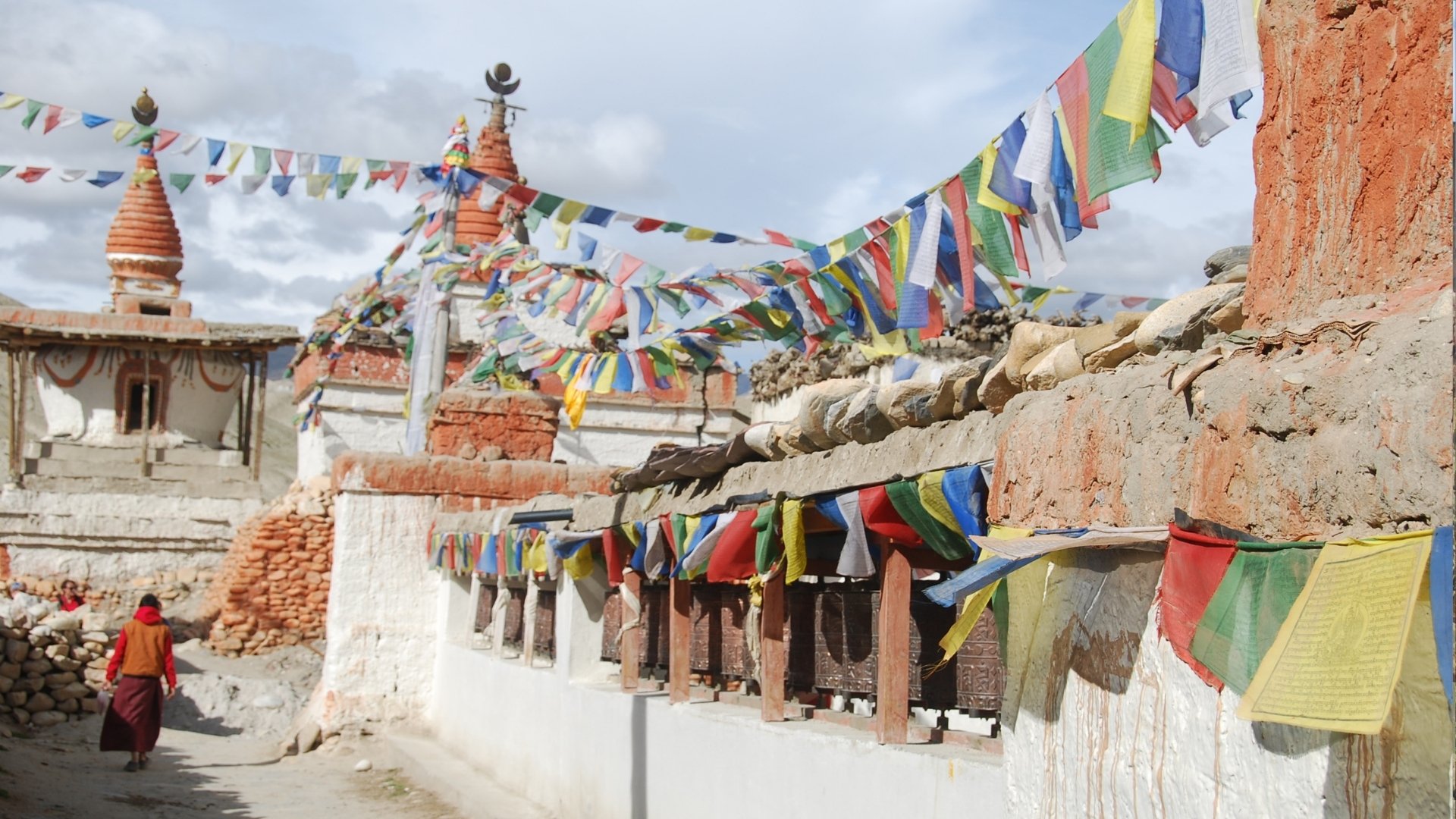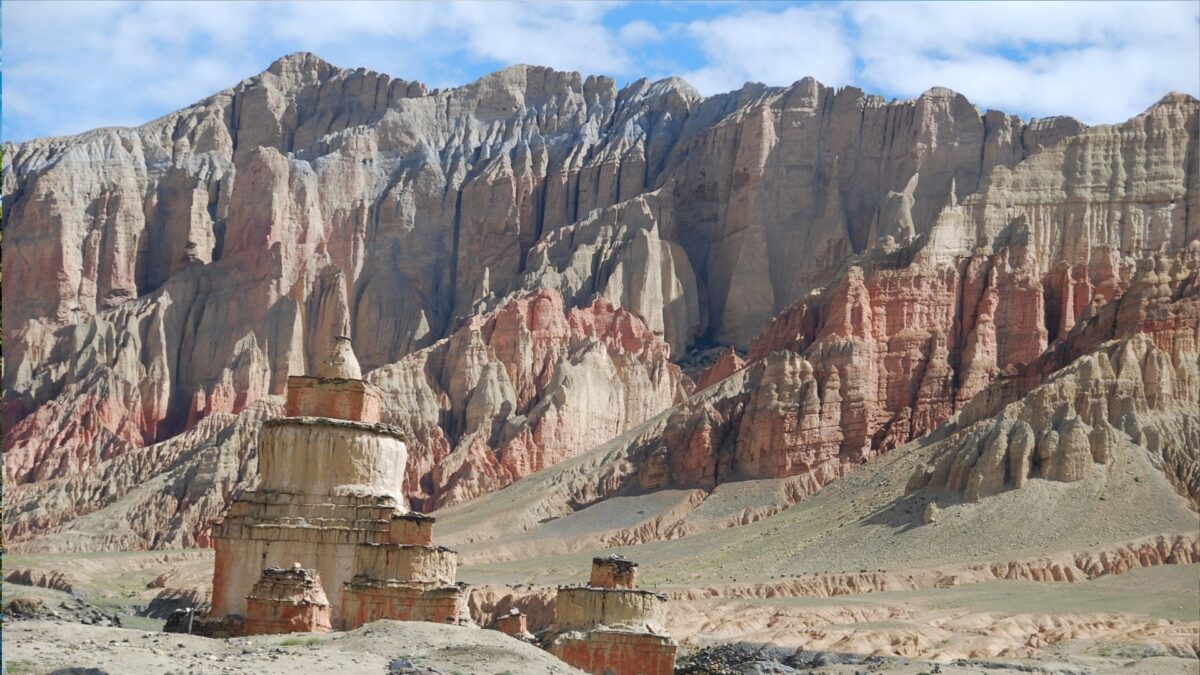 De eerste halte is Ghami, verstopt tussen grillige rotsformaties die gevormd zijn door eeuwenlange wind- en watererosie. Daarna gaat de route verder over enkele bergpassen. Je verlaat de hoofdweg voor een wandeling van ongeveer drie uur naar Dhakmar, beroemd om zijn opvallend roodgekleurde rotswanden. De dag eindigt in het grote dorp Tsarang, waar een imposante rode gompa uitkijkt op de ijswand van de Nilgiri.