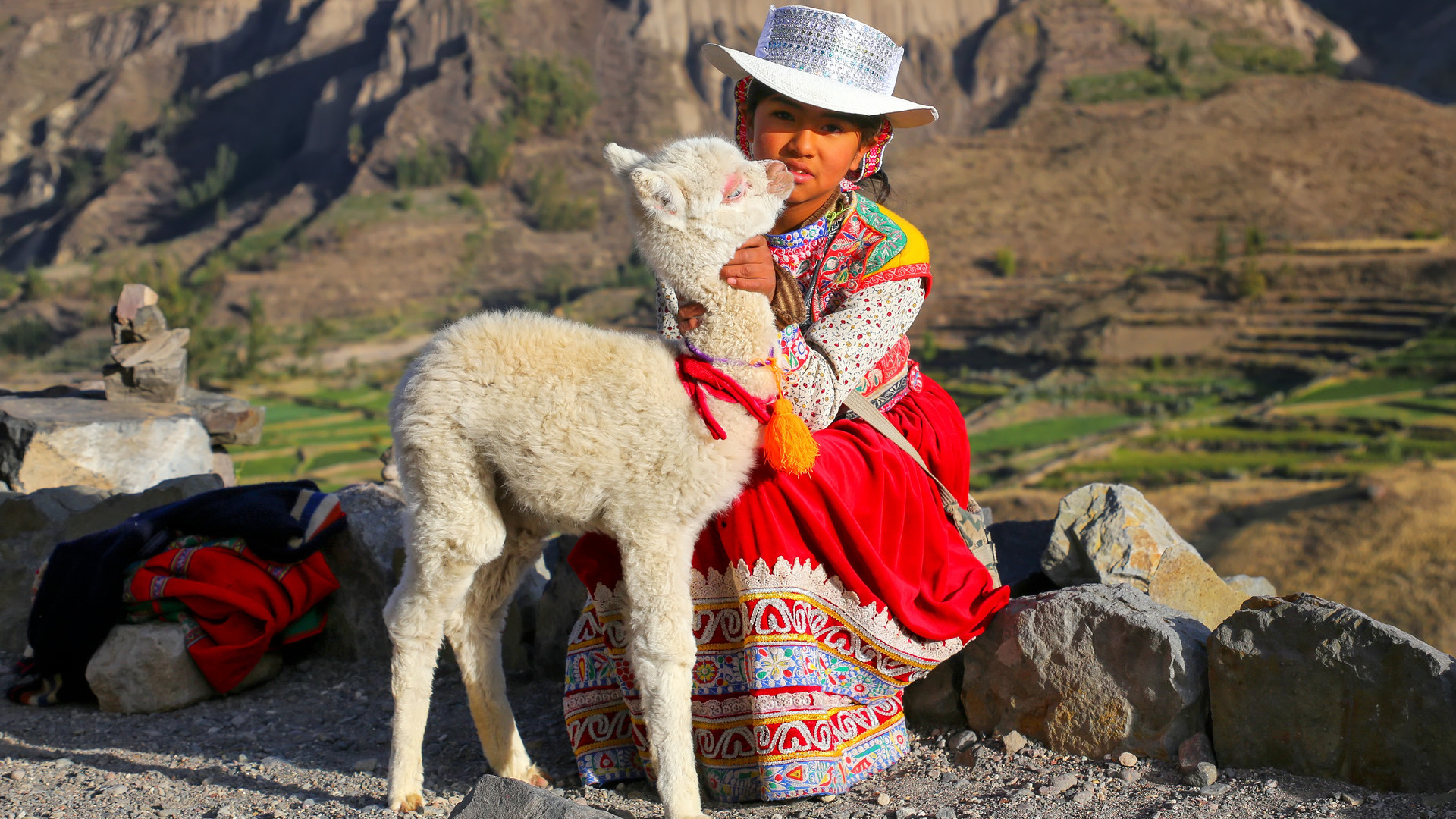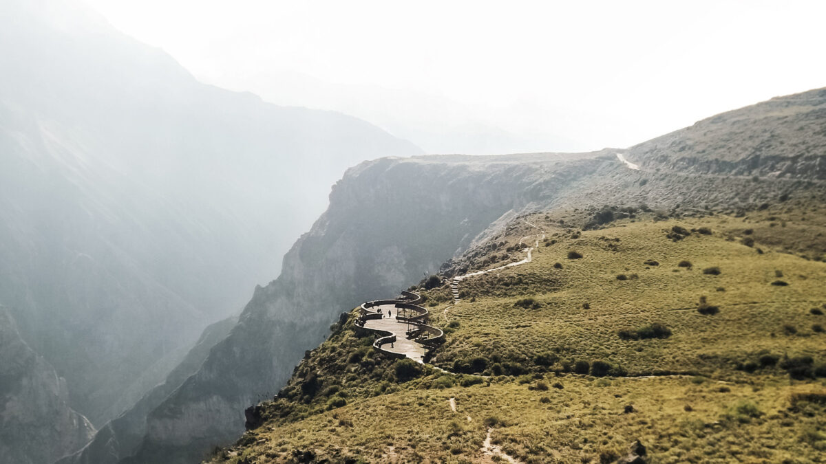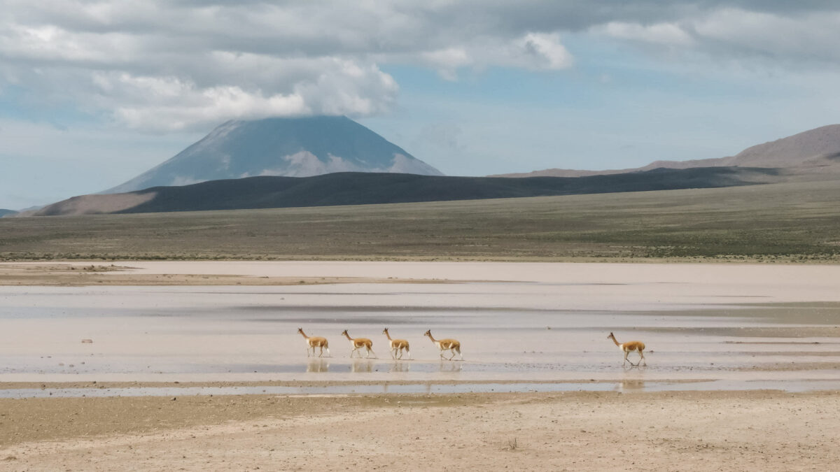 De rit van twee uur voert je eerst door een landschap van kale rotswoestijn, met een keten van vulkanen die de horizon domineren, en brengt je naar de Peruviaanse hoogvlakte Pampas Cañahuas. Hier heb je grote kans om kuddes vicuña’s en alpaca’s te zien grazen in het Aguada Blanca Salinas Nationaal Reservaat. Daarna klim je verder naar de spectaculaire Mirador de los Andes (4900 m), vooraleer je afdaalt naar het dorp Chivay, gelegen in de groene Colca-vallei.