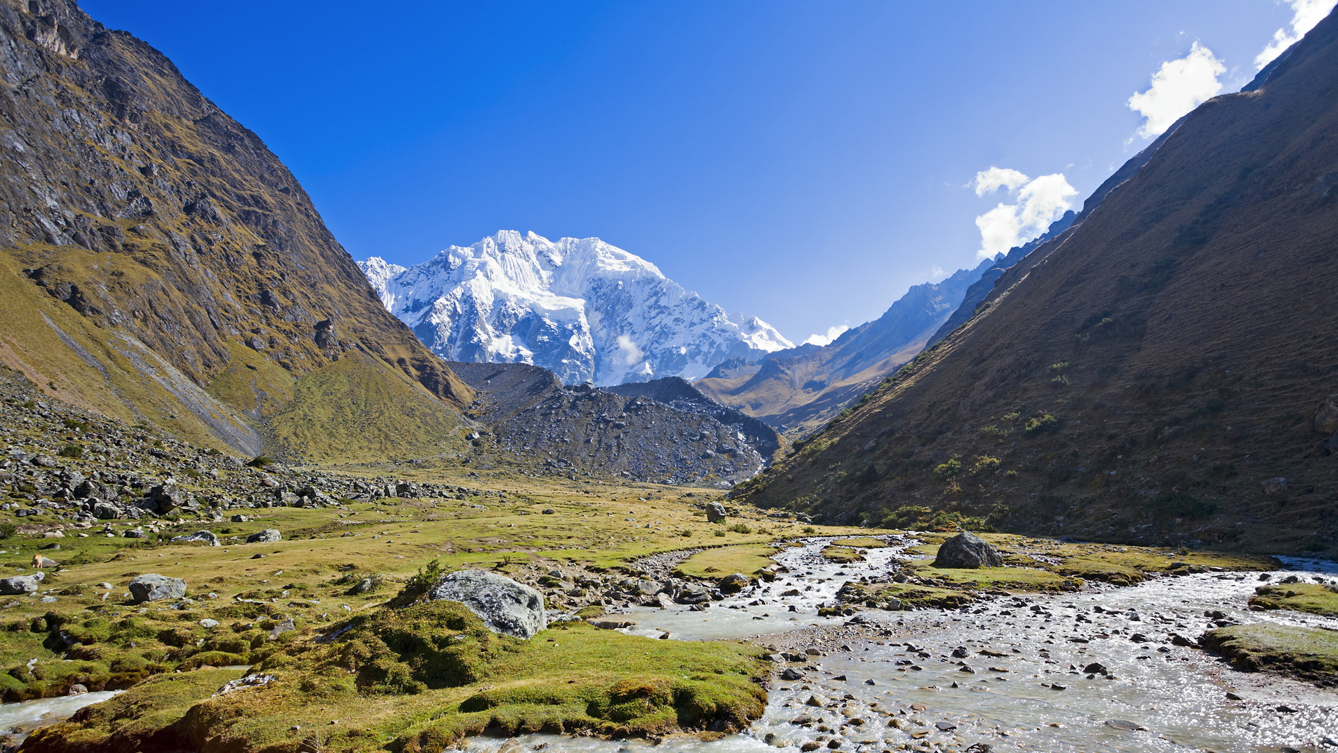 De lunch wordt geserveerd in een traditionele koffieboerderij, daarna volg je de steeds breder wordende Río Santa Teresa door een indrukwekkende vallei. Je eindigt de dag in Lucmabamba (2500 m), waar het kamp wordt opgezet tussen de groene hellingen.