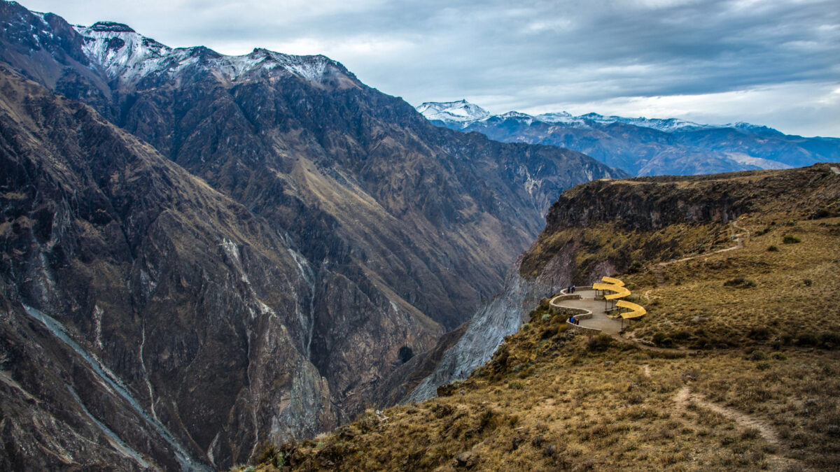 De rit van ongeveer vier uur voert je door een landschap van kale rotswoestijnen en een keten van vulkanen, richting de Peruviaanse hoogvlakte. Onderweg stop je in Pampas Cañahuas, met kuddes vicuña’s en alpaca’s in het Aguada Blanca Salinas Nationaal Reservaat. Na een korte halte bij het hoogste punt van de route, de Mirador de los Andes (4900 m), daal je af naar Chivay en Yanque (3400 m), charmante dorpjes in de groene Colca-vallei.