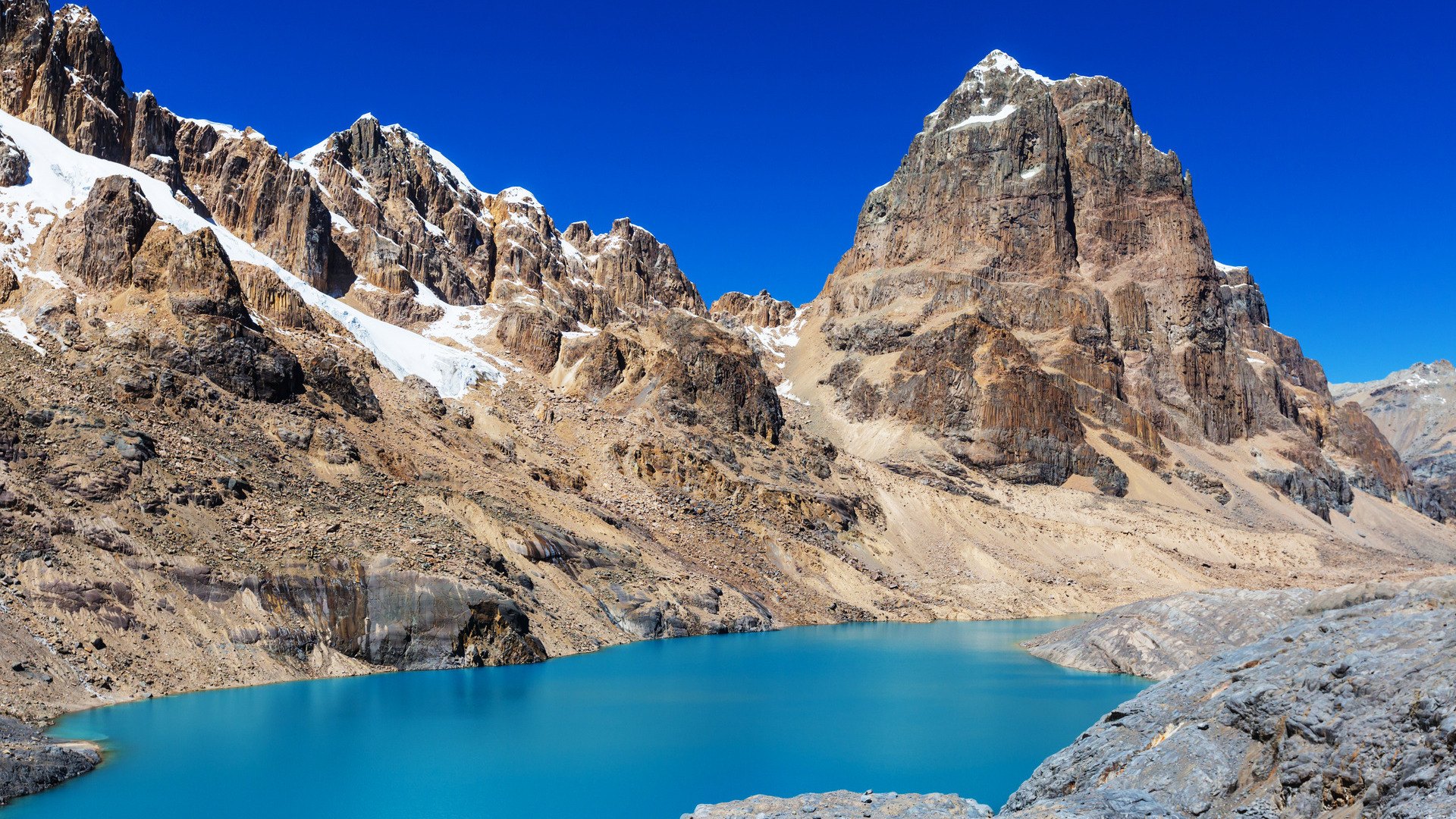 Vanaf hier zie je een zee van toppen: Ninashanca, Jirishanca, Yerupajá Chico en de indrukwekkende Yerupajá (6634 m), Peru’s tweede hoogste berg. De afdaling brengt je naar één van de mooiste kampplaatsen van de hele route, aan het betoverende Laguna Jahuacocha (4150 m).