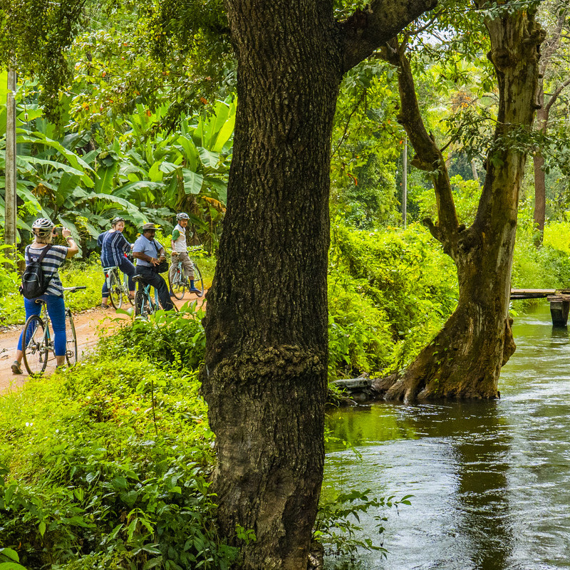 Liever een fietstocht? Dan wacht een slow travel avontuur: fietsen door de achterafwegen van Polonnaruwa. Ver weg van de toeristenroutes voert een lokale gids je over stille kanalen, houten bruggetjes en langs rijstvelden waar boeren hun werk uitvoeren zoals ze dat al generaties lang doen. De rit is licht (ca. 12 km) en het tempo ligt laag. Afsluiten doe je in stijl met de een koninklijk rijst-en-curryfestijn midden in de velden. Hier proef je van meer dan tien verschillende curries, op een bananenblad geserveerd. Je eet zoals de locals: met je handen.