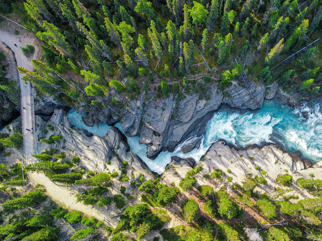 Je begint de dag met een rustige rit langs de Maligne Lake Road. Eerst bezoek je Medicine Lake, een intrigerend natuurfenomeen waar het water ondergronds verdwijnt en weer opduikt verderop. Vervolgens vervolg je naar Maligne Canyon, waar je over smalle bruggen wandelt langs indrukwekkende watervallen en diepe kloven die al duizenden jaren door het smeltwater zijn uitgesleten. Daarna maak je een boottocht over het iconische Maligne Lake. Spirit Island is een droomplek, omgeven door bergen en stilte. De natuur is hier krachtig en groots.